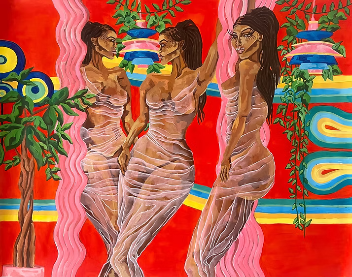 Artist Bio: Ahmrii Johnson (b. 2000, Lakeland, FL) is a Bahamian American fashion designer and multidisciplinary artist whose work fuses Caribbean craft, botanical science, and indigenous wisdom into ethereal, narrative-driven designs. Drawing from her heritage, lived experiences, and biblical text, Johnson transforms textiles and garments into stories that bridge art, fashion, and spiritual reflection. A Parsons School of Design BFA graduate in Fashion Design, Johnson’s practice blends surrealist narratives with tactile techniques, including hand-treated fabrics and exaggerated silhouettes inspired by fashion illustration. Her designs harmonize geometric and organic forms, reflecting a thoughtful balance of movement, structure, and intention. Johnson explores endurance, gratitude, and the resilience of the human spirit—concepts that continue to inform her approach to fashion. She creates garments that celebrate Caribbean artisans, sustainability, and the tangible transformation clothing can have for underserved communities, while offering wearers a way to connect with culture, ethics, and intention. Her work has been featured with Tommy Bahama, Teen Vogue, and Highsnobiety, as well as Hyacinth Gallery. Each creation embodies her commitment to thoughtful design, spiritual resonance, and Caribbean-American identity, inviting those who wear her pieces to experience both beauty and purpose.