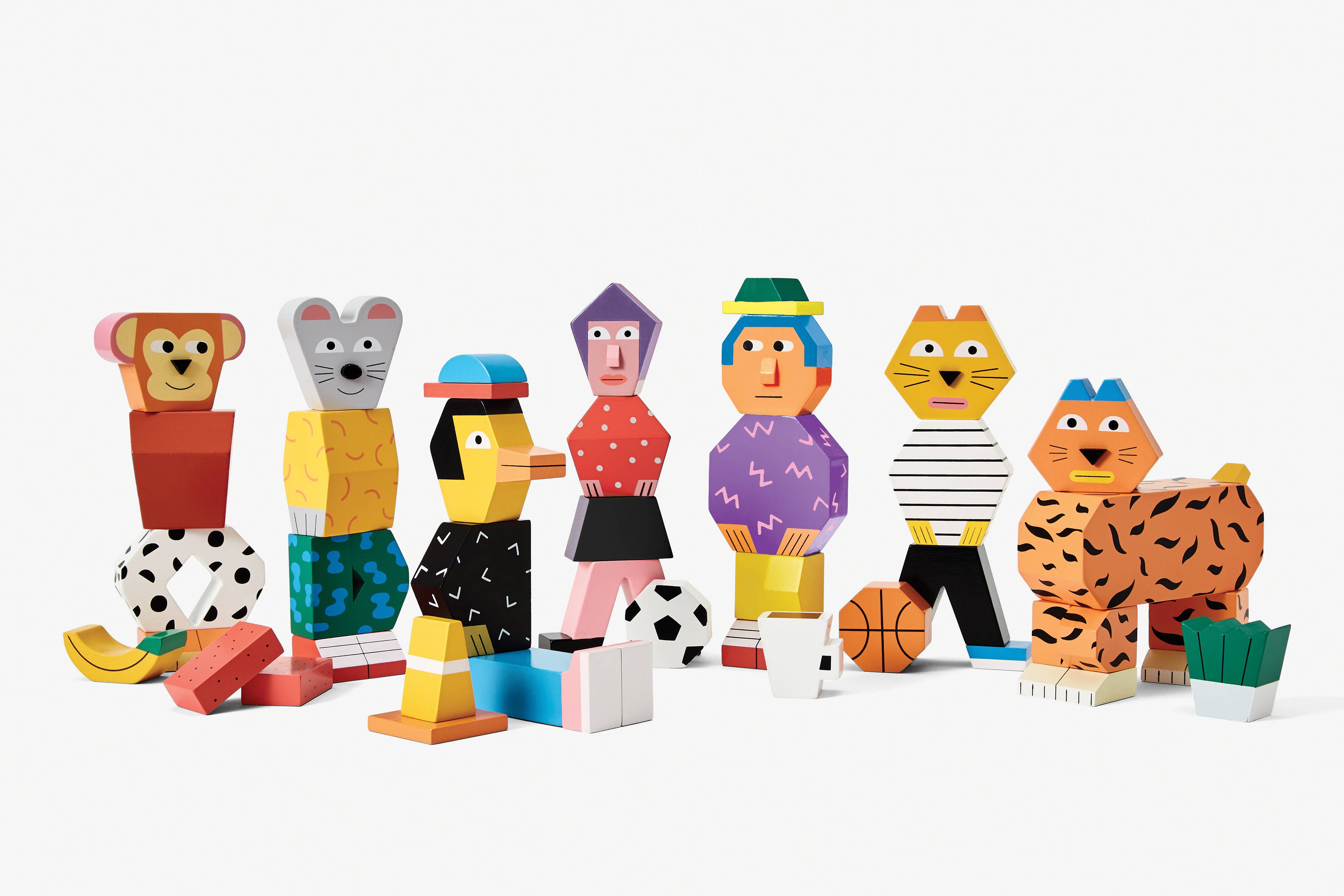 Everyone at the Block Party is like you and me: each with a unique personality and story to tell, shaped by the communities they live in. Stack and rearrange their pieces any way you like – or mix and match to create your own collection of neighborhood friends. Material: painted wood.