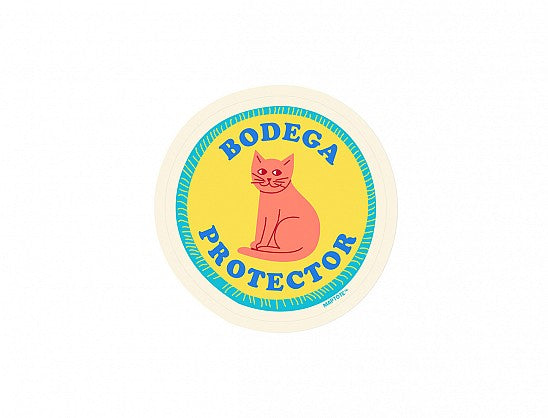 Introducing the Bodega Protector Cat Sticker, the purrrfect accessory for your water bottle, laptop, or notebook. Featuring an adorable bodega cat from the streets of New York City, this matte laminated polypropylene sticker is both colorful and durable. Designed in Brooklyn and made in the USA. Measuring approximately 3.11" x 3.18".