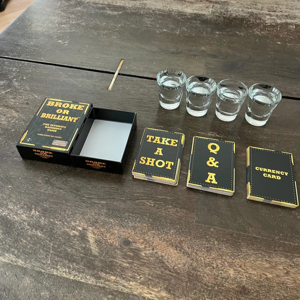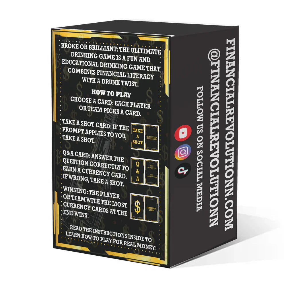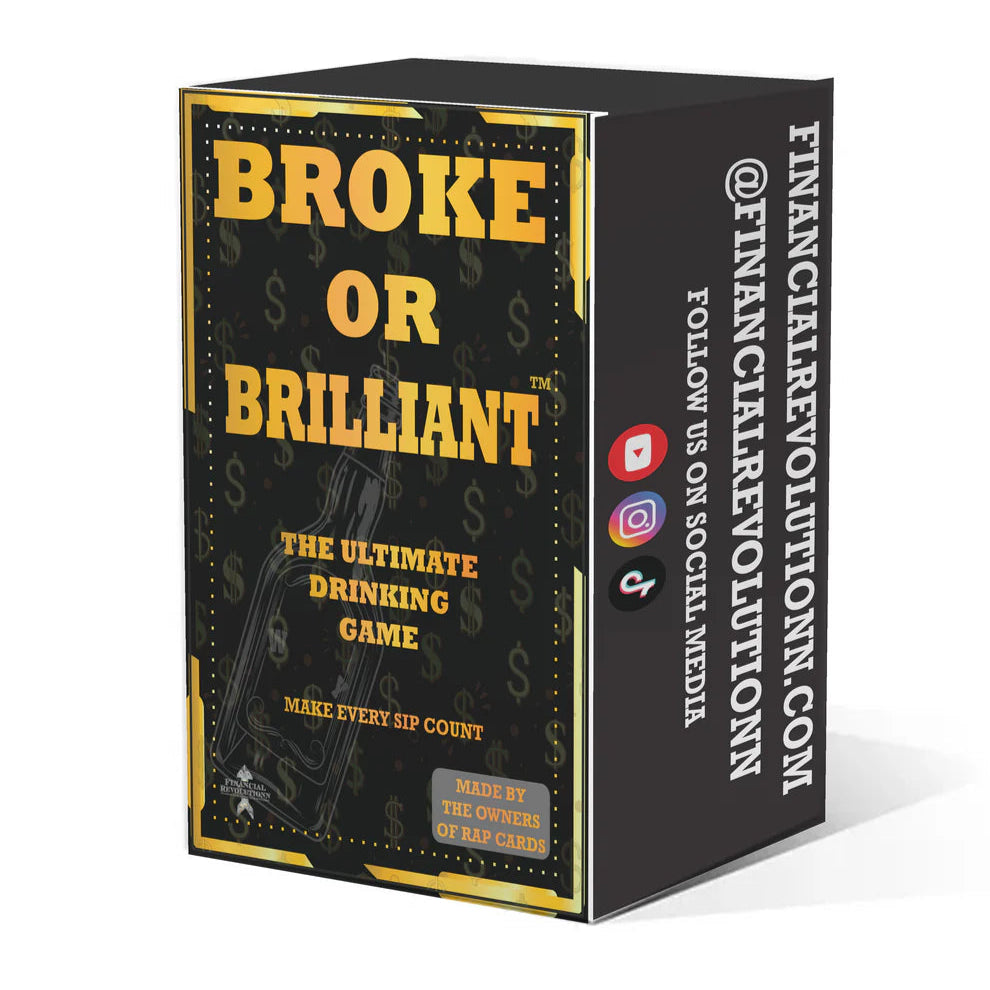 Perfect for parties, pre-games, or any gathering, Broke or Brilliant is not just a game; it's an entertaining way to enhance your financial literacy. So gather your friends, pour some drinks, and let the best financial mind win—but remember to drink responsibly!x