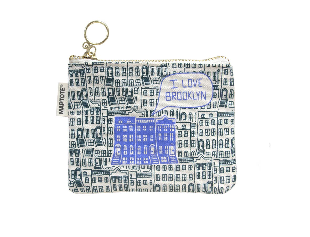 The perfect sized zip pouch for essentials or keeping your lunch money and loose change safe. A perfect gift for kids featuring Brooklyn, New York. 100% natural cotton canvas. High quality brass zipper. Approximately 4" x 5″, with 2-color silkscreen print. Designed and printed in Brooklyn, NY, USA.
