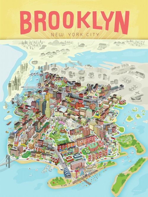 Taking a page from Saul Steinberg's 1976 New Yorker cover "View of the World from 9th Avenue" DUMBO-based tech firm Blankslate has just launched a modern-day version of the poster for Kings County. 18x24