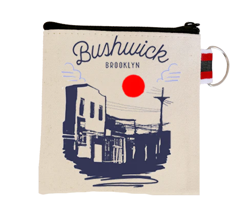 Keep your coins safe and stylish with the Bushwick Coin Purse. This 100% cotton canvas coin purse features a hand-printed Lola Star design. With a handy zipper and ring, you can easily attach this coin purse to your backpack or beach bag.