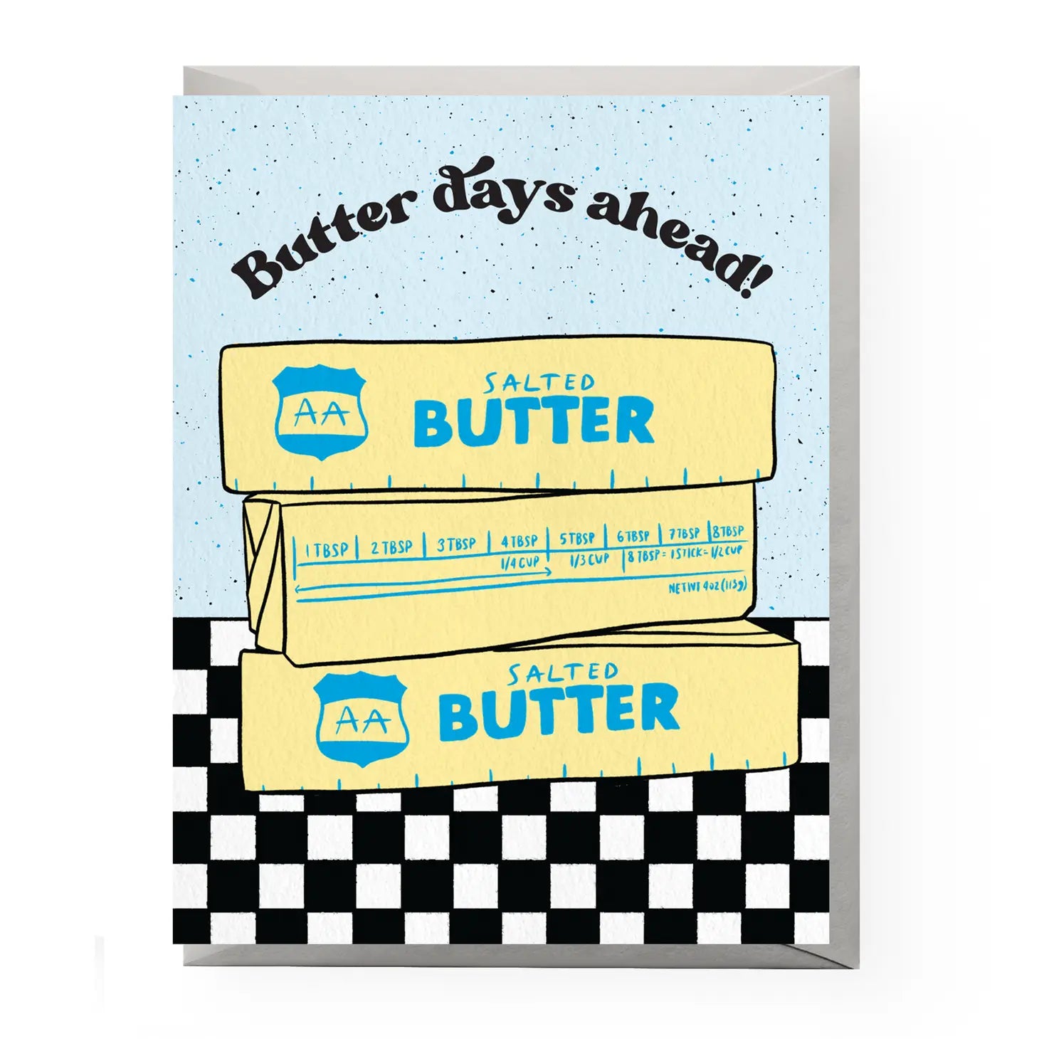 Send warm wishes with Butter Days Cards. These A2 size (4.25" x 5.5") greeting cards are printed on 100% recycled paper, making them a sustainable choice. Each card comes with a coordinating envelope and is blank inside, perfect for any occasion. Sealed in a protective cellophane sleeve, these cards are made in the U.S.A. for that extra special touch.