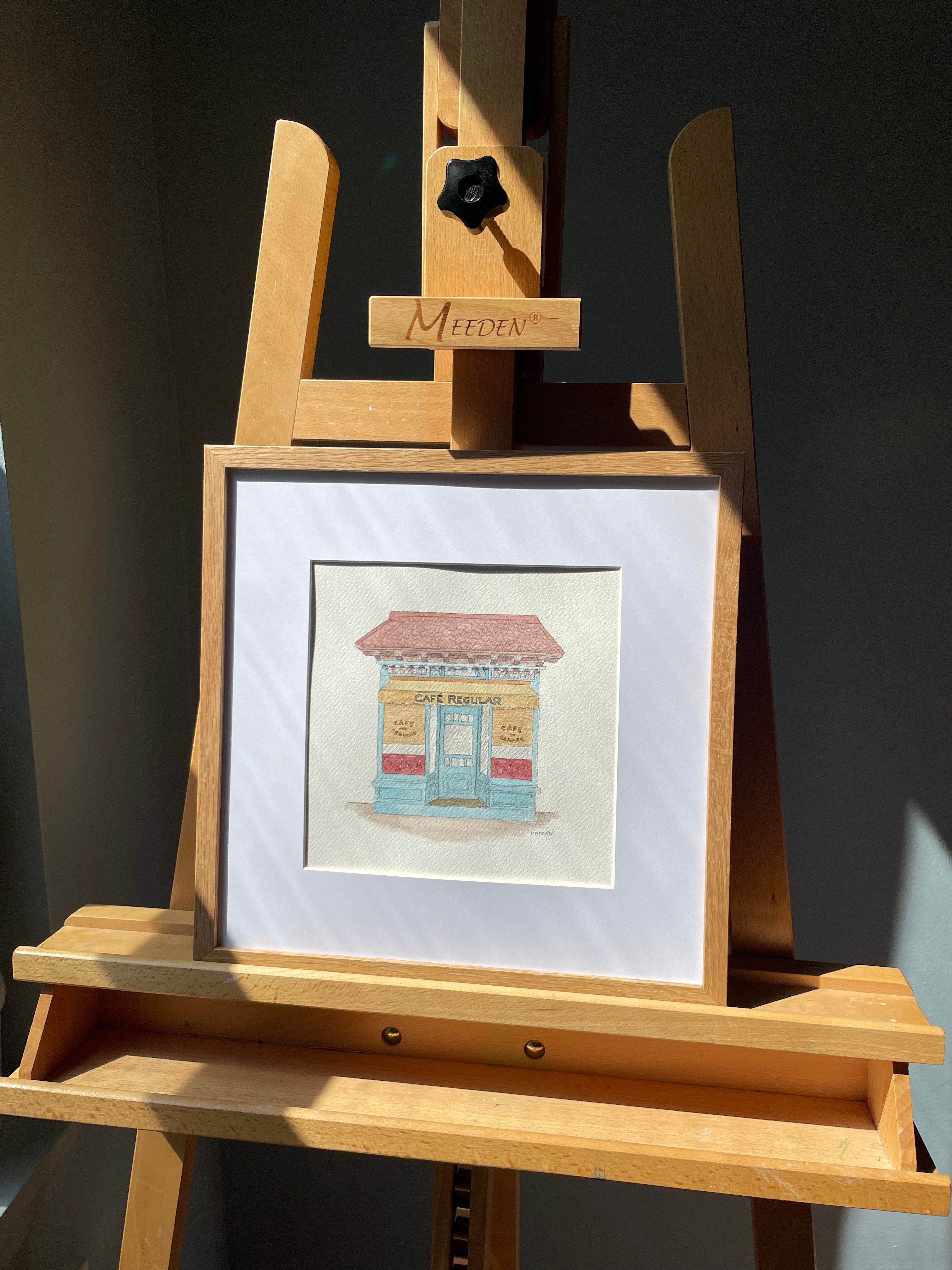 “Café Regular” is a cozy watercolor postcard from Brownstone Brooklyn. Kylie Brown captures the ritual of morning coffee with love.