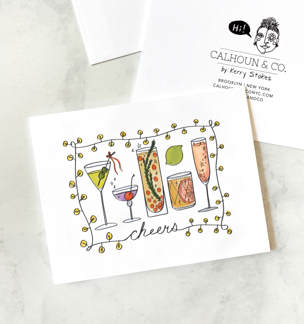 Cheers to You! And you, and you, and them, and those friends :) Festive cocktail inspired greeting card... great for the holidays, weddings , or any time you'd like to raise a glass! Calhoun & Co. is based in Brooklyn NY. Artwork designed in Brooklyn and printed in the US.