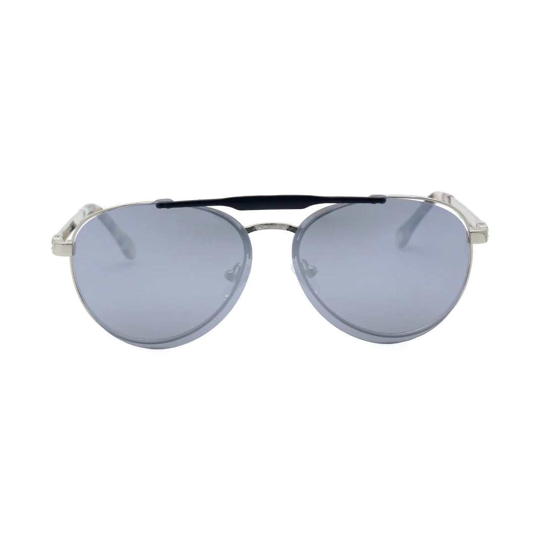 Silver Metal lightweight Aviator Frame with Detachable Clip-On in 2 colors: Cerulean & Silver. A stunning blend of timeless elegance and modern allure. The patent pending magnetic clip technology, allows for easy transition to sunglasses and adds a touch of nostalgia with its flip up flexibility.