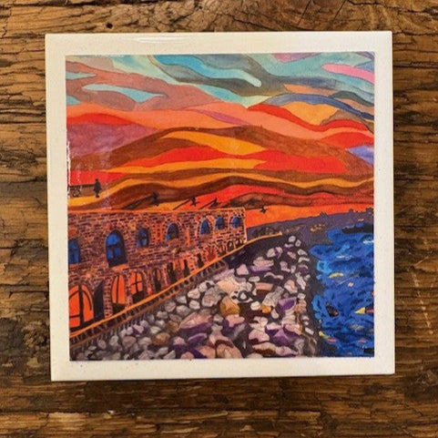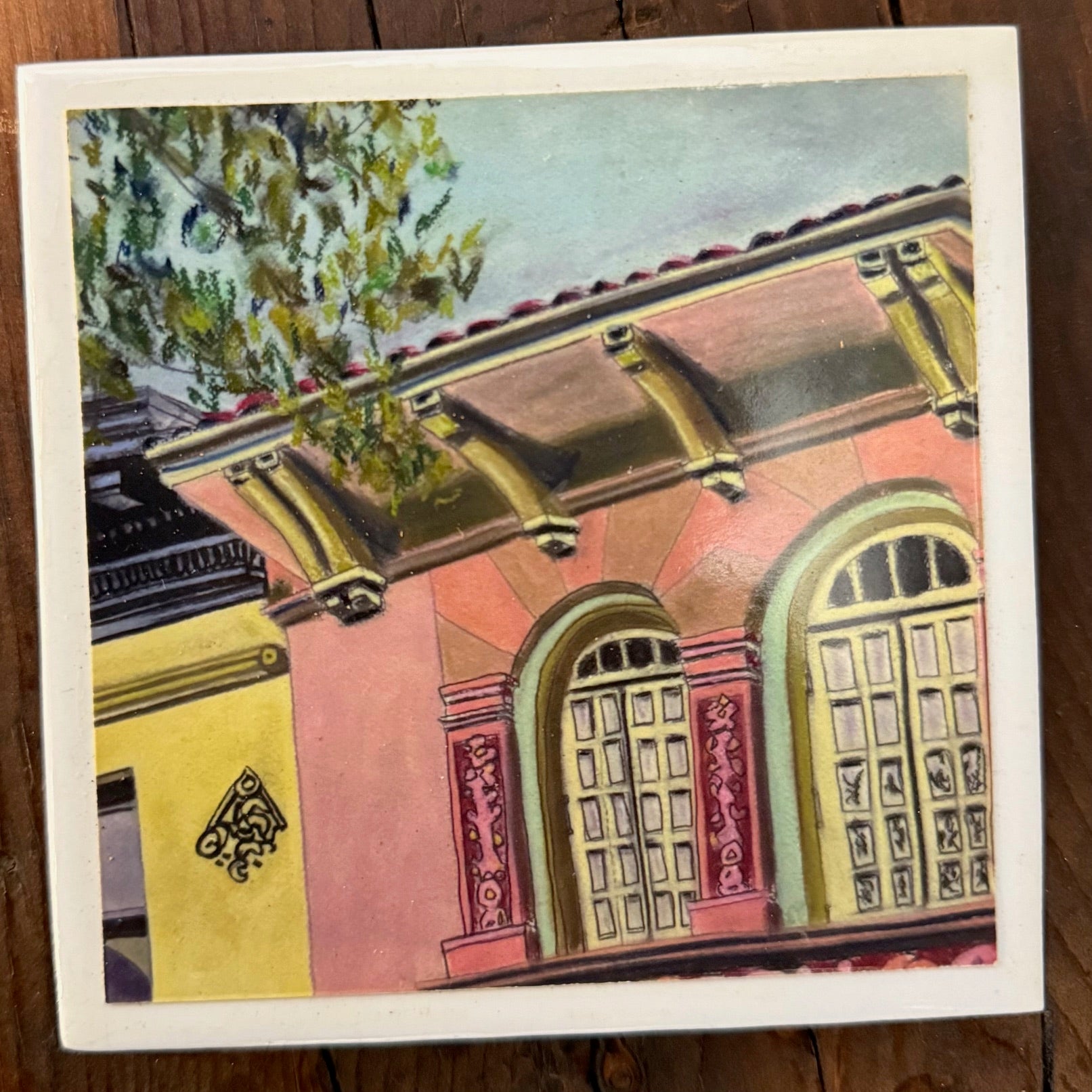 I’m obsessed with architecture and endlessly take photos of interesting buildings I use for reference for paintings. I make coasters of my artwork so everyone can take home or gift to a faraway friend of places they love in Brooklyn.