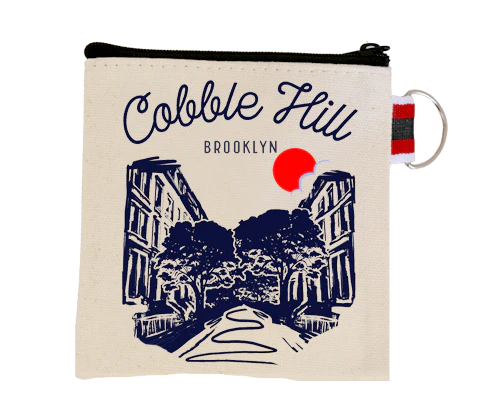 Keep your coins safe and stylish with the Cobble Hill Coin Purse. This 100% cotton canvas coin purse features a hand-printed Lola Star design. With a handy zipper and ring, you can easily attach this coin purse to your backpack or beach bag.