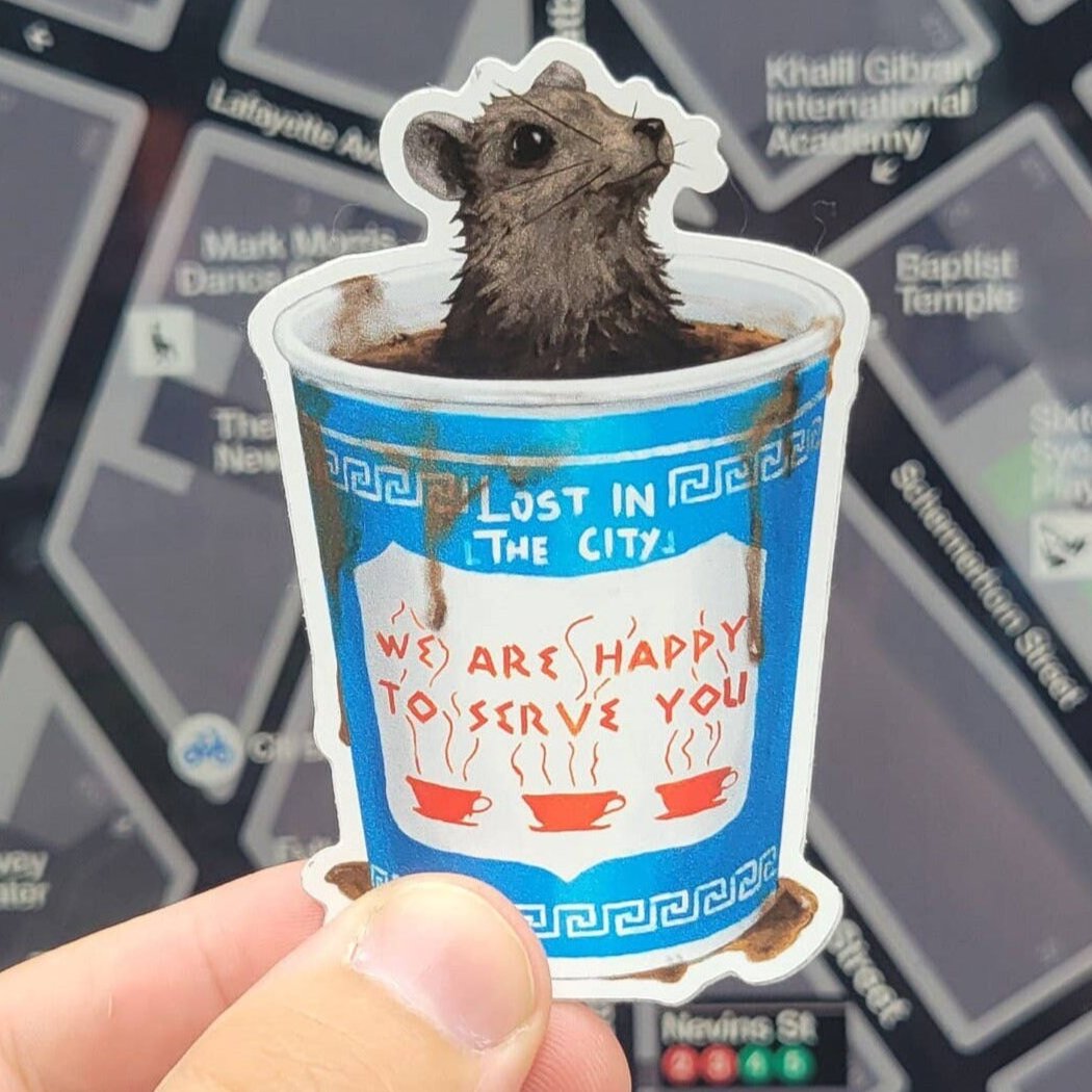 Spice up your laptop or water bottle with our Coffee Lover Rat Sticker! This quirky sticker features a charming rat enjoying a cup of coffee, sure to bring a smile to any coffee lover's face. Stick it on anything and show off your love for coffee in a fun and playful way. Perfect for adding a touch of whimsy to your everyday items!