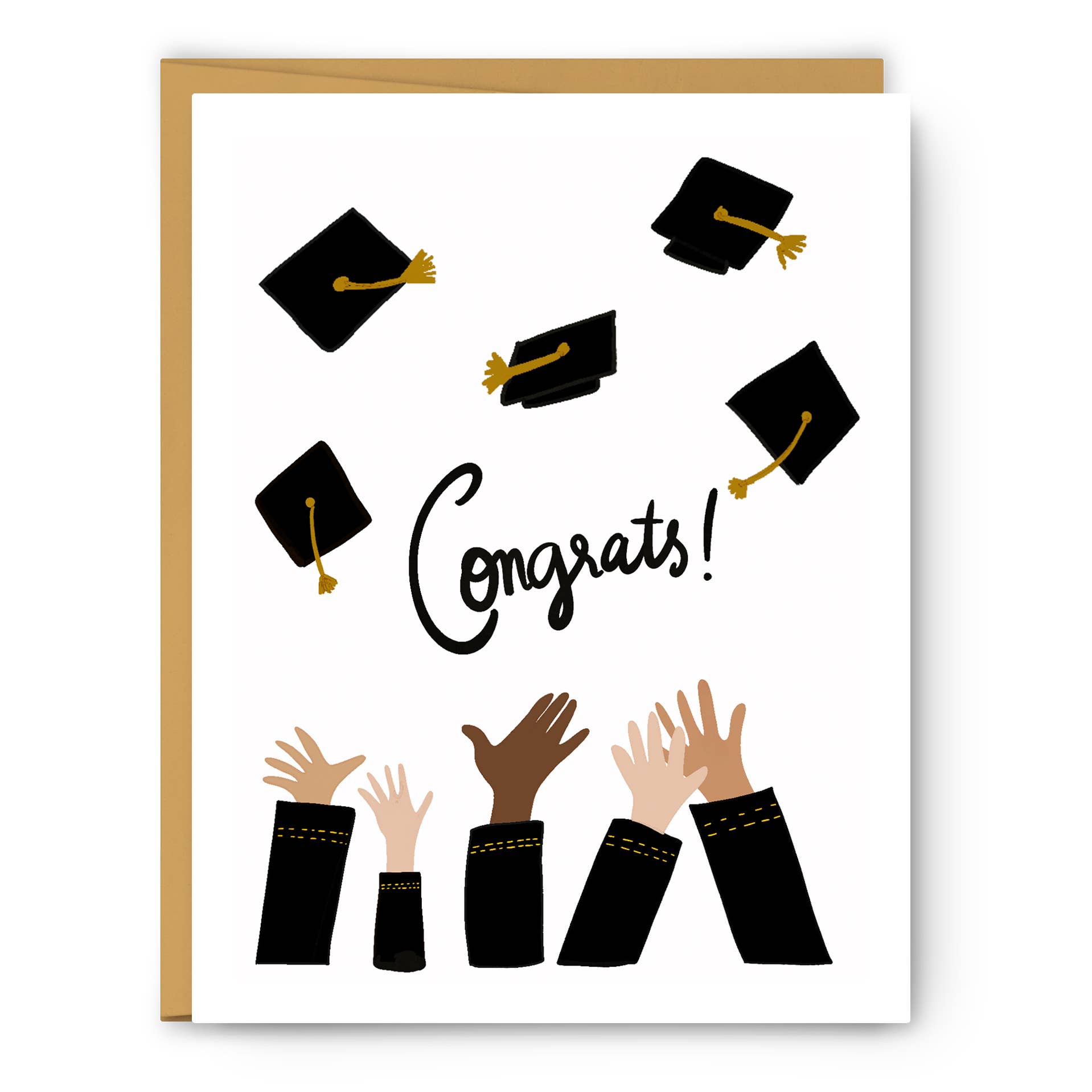 Celebrate and congratulate with our Congrats Graduation Hats card. Perfect for an amazing milestone, share warm wishes with a loved one. Blank inside, so you can share heartfelt words. Made in Brooklyn, NY.