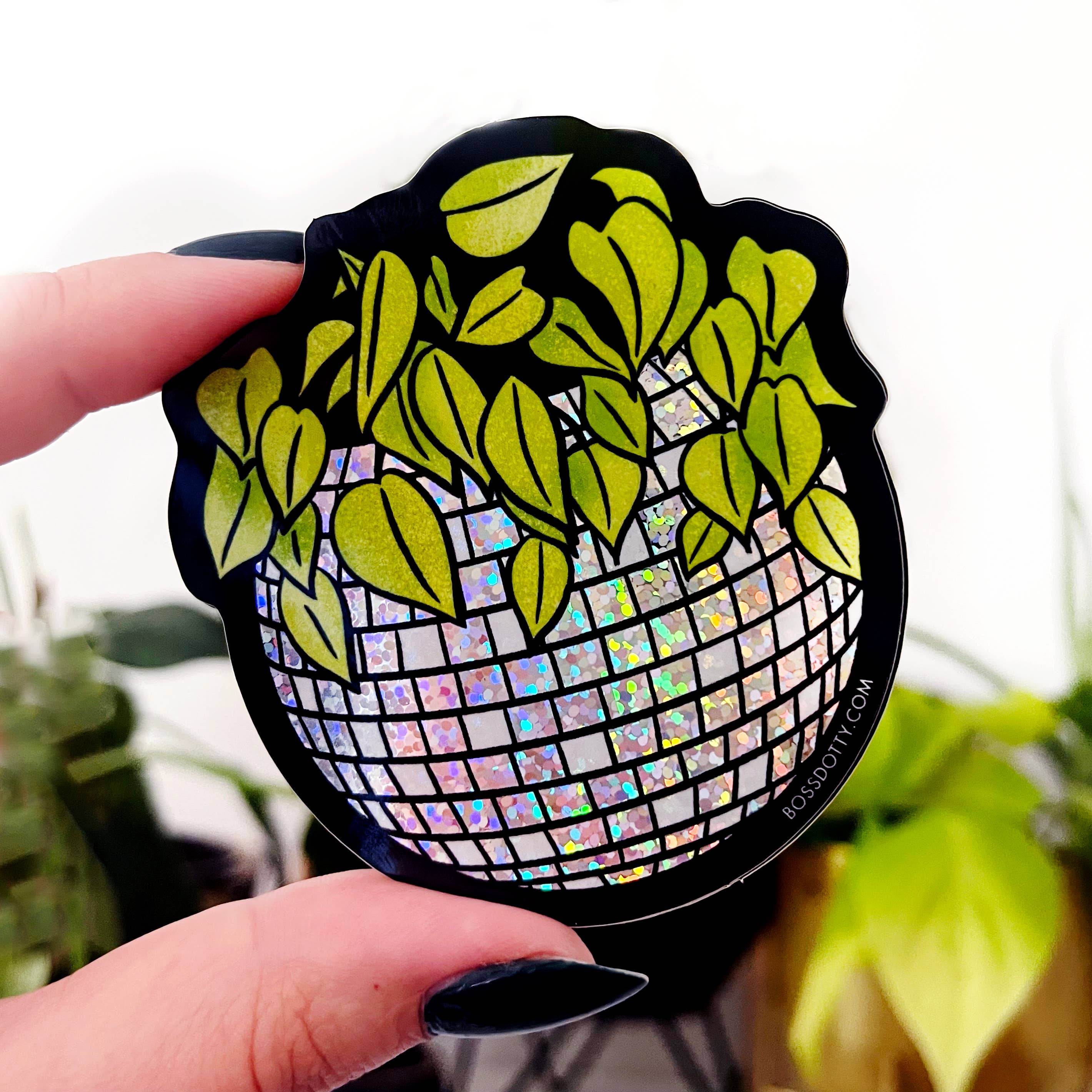 • Get your hands on a 3.2" tall sticker with a playful PVC-free glitter finish and glossy laminate. It's sun and water resistant and eco-friendly, shipping without any pesky plastic packaging.