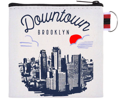 Keep your coins safe and stylish with the Downtown Brooklyn Coin Purse. This 100% cotton canvas coin purse features a hand-printed Lola Star design. With a handy zipper and ring, you can easily attach this coin purse to your backpack or beach bag.