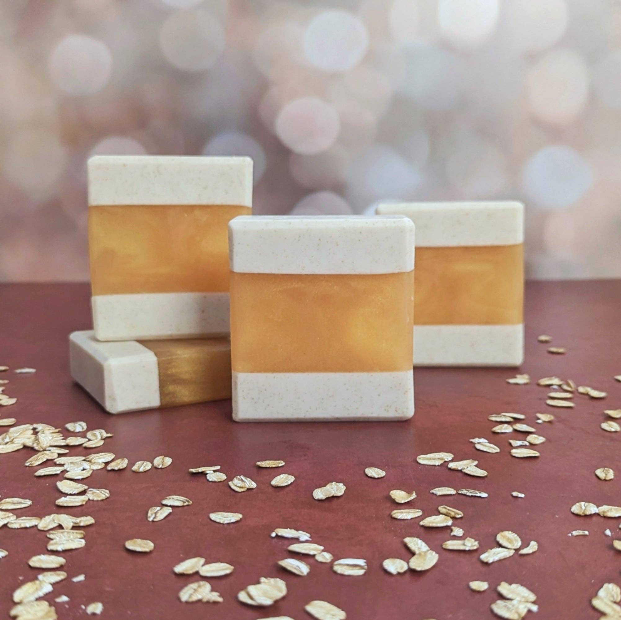 Embrace the warmth of every moment with Golden Hour soap. This soap has two oatmeal layers that lightly exfoliate, and a middle of swirling golden honey.