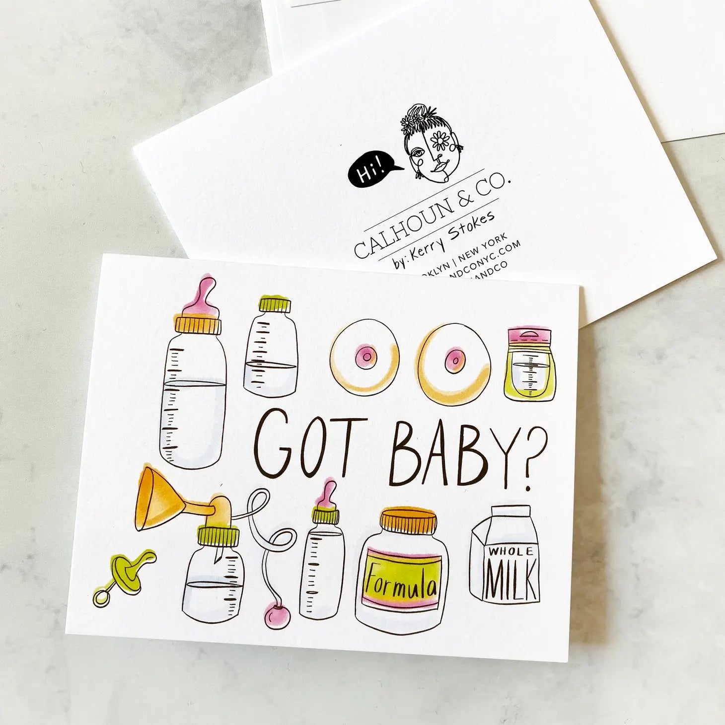 Looking for a unique way to congratulate or show support for new parents? Look no further than our Got Baby? Card! Handmade with love and care, this milky card celebrates all types of parenting. Designed and printed in the US by our Brooklyn-based team at Calhoun & Co.