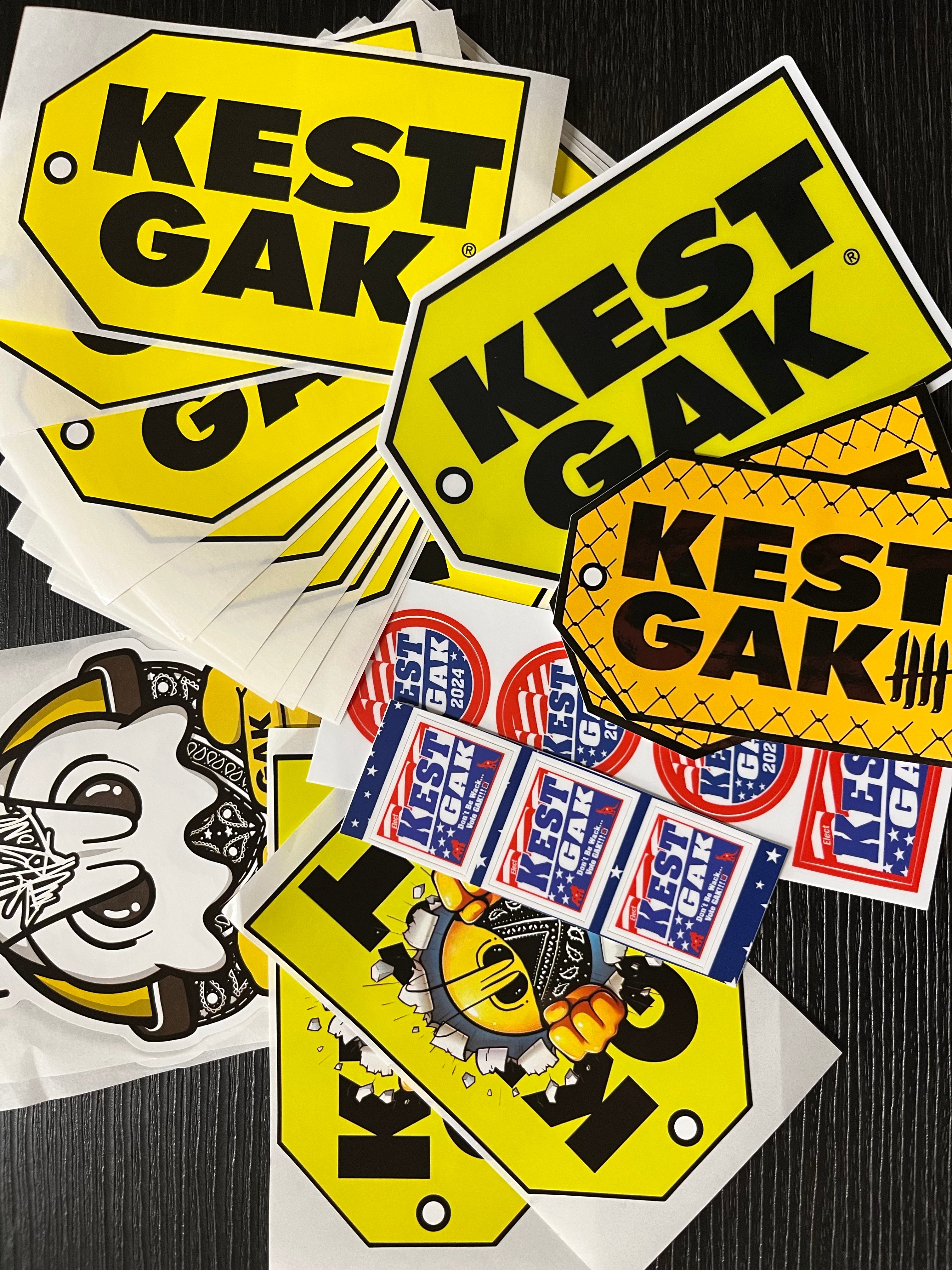 25 KEST GAK VINYL EGGSHELL STICKERS AND HAND WRITTEN POSTAL.