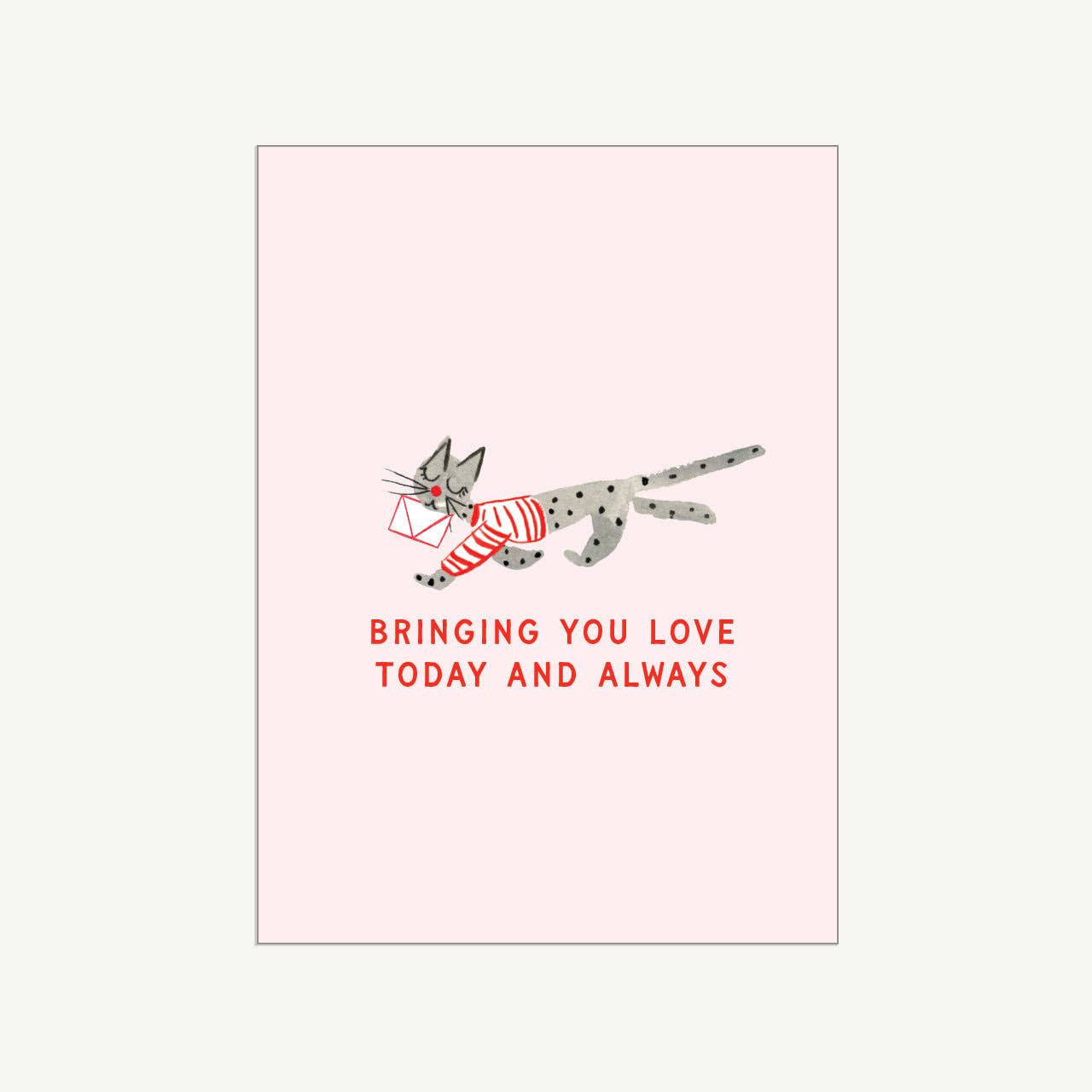 Hand-drawn illustration and typography Printed in the U.S.A. Folded A6 card measuring 4.5" x 6.25" Flat matte. Printed in brilliant hues. Blank on the inside. Colored envelope (color will most certainly vary!)