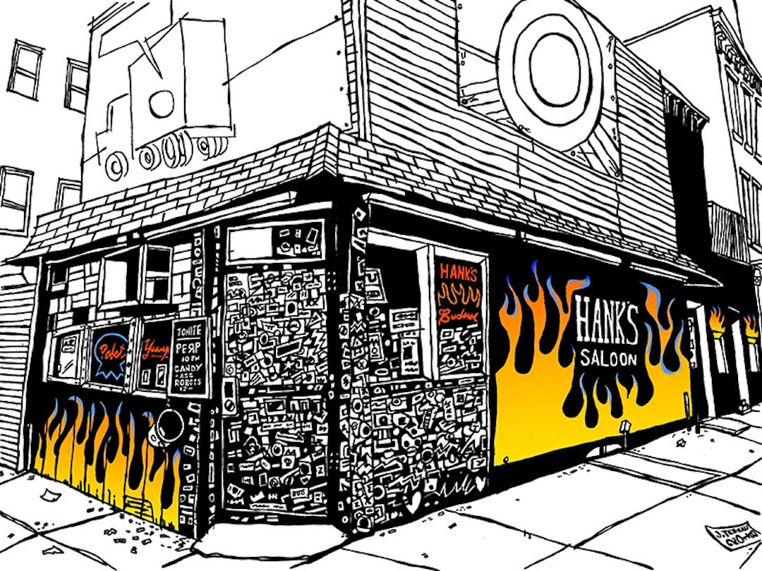 He drew it as a commission in anticipation of its December 2018 closing. A longtime regular was giving prints to some of his friends, keeping the ink drawing for himself. People loved Hank's, no doubt about it. Esquire magazine named it one of the "best bars in America," no less.