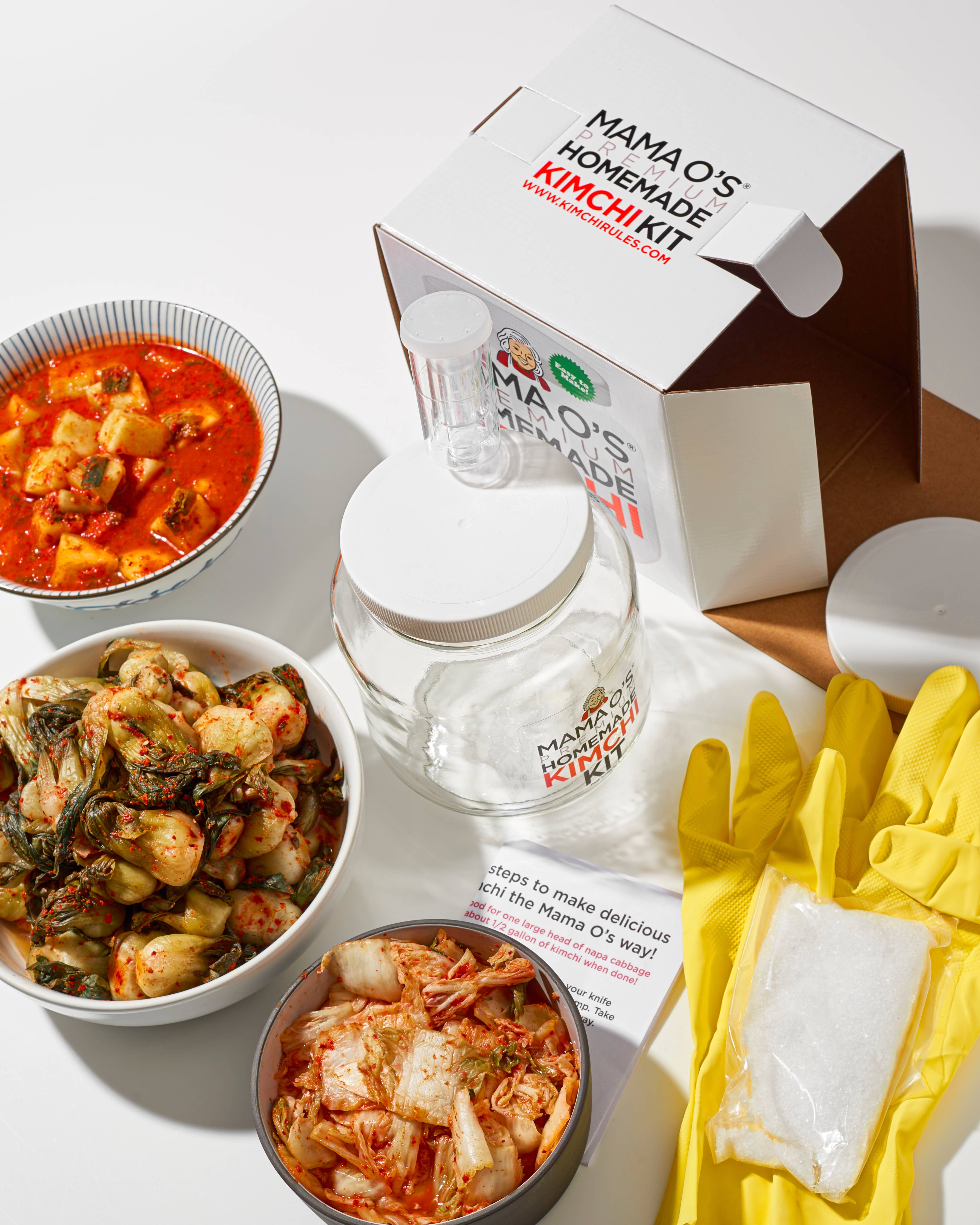 This is the first kit for making kimchi at home the Mama O's way. Comes out perfect every time. What normally takes 3 hours you can do in under 10 minutes of prep time. Turns 5 lb of veggies into 1/2 gallon of probiotic rich immune supporting kimchi. The kit is reusable. Contains everything you need minus the fresh vegetables.