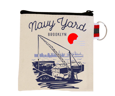 Keep your coins safe and stylish with the Navy Yard Coin Purse. This 100% cotton canvas coin purse features a hand-printed Lola Star design. With a handy zipper and ring, you can easily attach this coin purse to your backpack or beach bag.