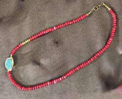 Elevate your style with our new Terry Necklace featuring vibrant red and turquoise beads! This playful and eye-catching design is sure to bring joy to any outfit. Upgrade your accessory game and make a statement with our Terry Necklace.