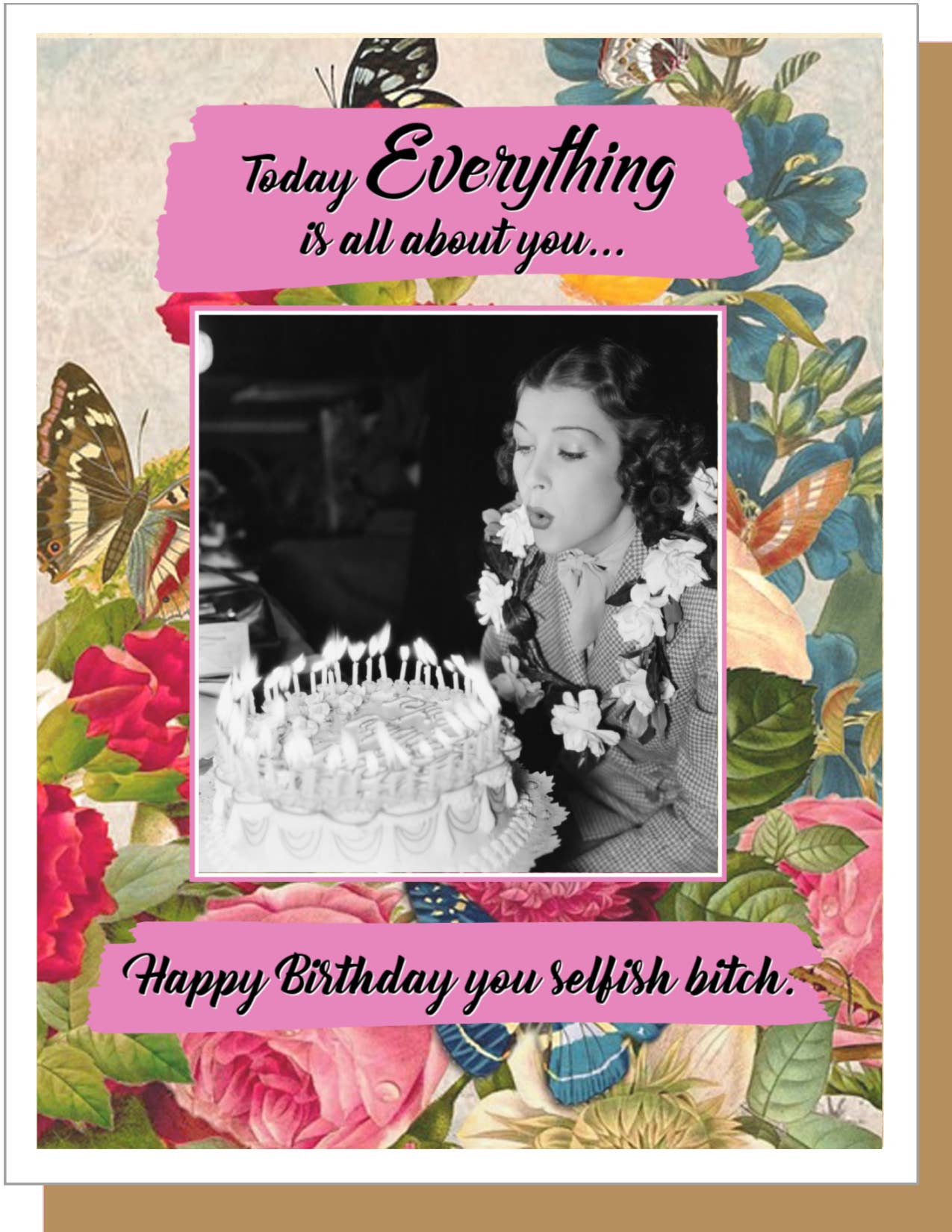 Today EVERYTHING is about you, you selfish bitch. Funny birthday cards for whatever stage of life you're at. Card details: Designed in Brooklyn, NY and printed in the USA on...