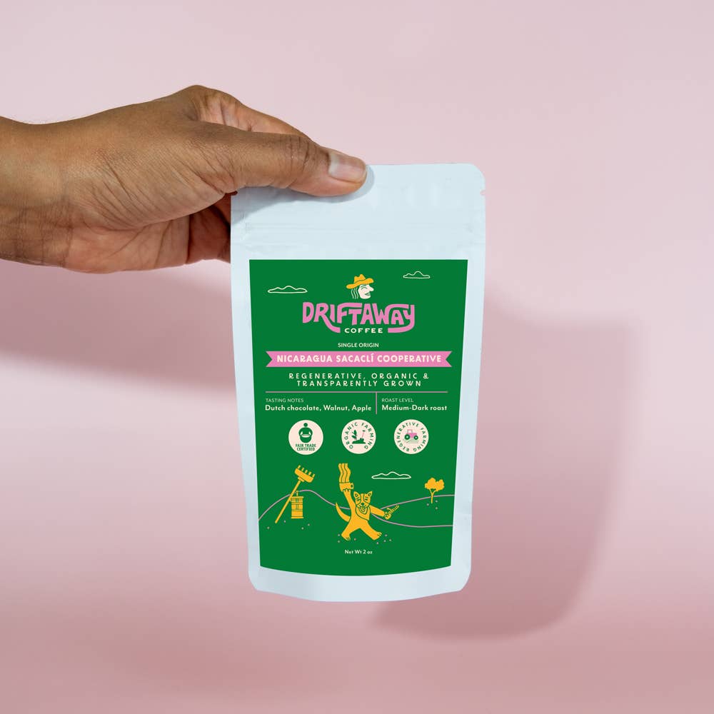 4 oz bags of coffee. 1) Women Producer's Medium roast - All-women produced from Guatemala & Burundi, with tasting notes of lemon, caramel & graham cracker. Dark Roast - from Nicaragua - Organic coffee from Nicaragua's Sacacli Cooperative, which uses regenerative agriculture practices.