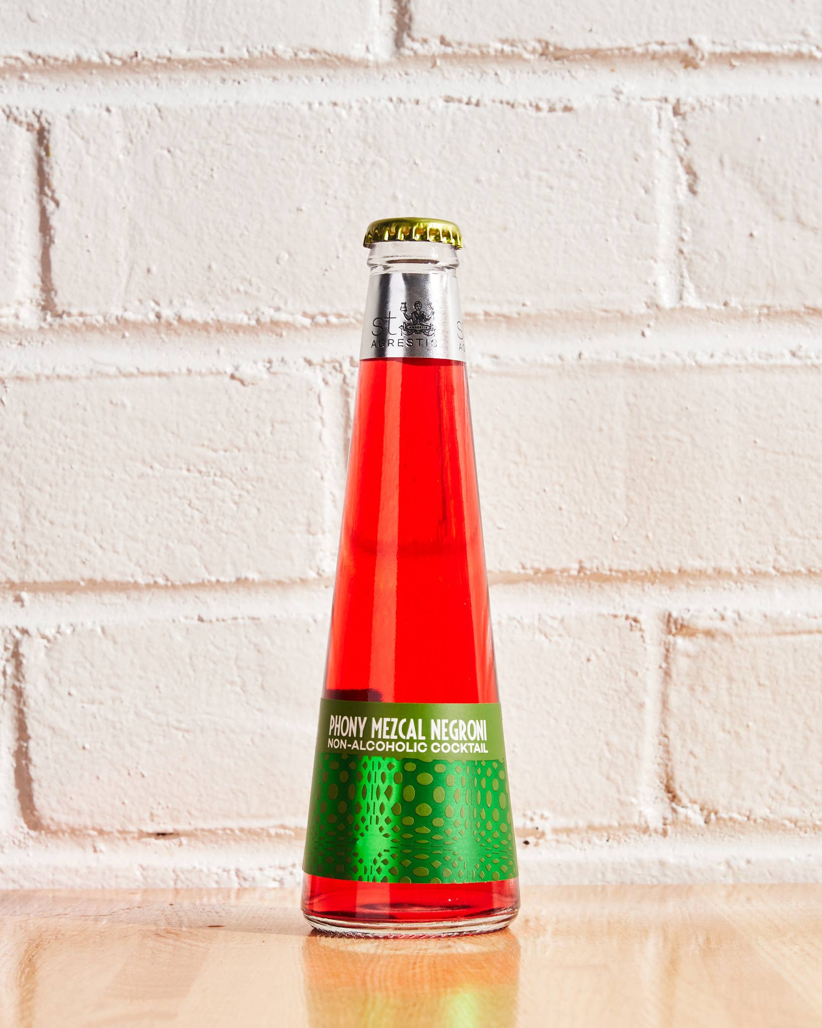 2025 San Francisco World Spirits Competition Double Gold; Best in Class Finalist Introducing the clarified Phony White Negroni. Developed and bottled at our Brooklyn, NY distillery by our team of award-winning producers, the Phony White Negroni is made with 30 real, raw, non-GMO, organic ingredients. Made utilizing the base of our beloved classic Phony Negroni®, our release is driven by amplified gentian root and citrus notes, providing a bright shining, bitter backbone that is then clarified to provide a near-clear drinking experience. These layered botanicals paired with a touch of carbonation provide a silky mouthfeel that mimics the bite of alcohol. The final result is an elegant, complex and juicy non-alcoholic cocktail with Champagne-color that’s perfect for all of your celebrations. Made ready-to-serve, all you need is a bottle opener to enjoy! Enjoy in a rocks glass over ice with a lemon twist, or from the bottle anywhere.