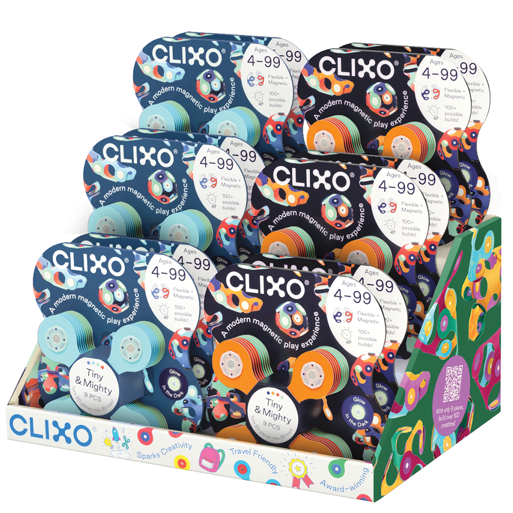 These 9 pieces of our signature Quad shape can make numerous clever creations. Whether you snap a snake, click a crown, roll a ball, or stack the shapes – a world of fun discoveries is in this pocket-sized-wonder pack in our Marine or Space colors!