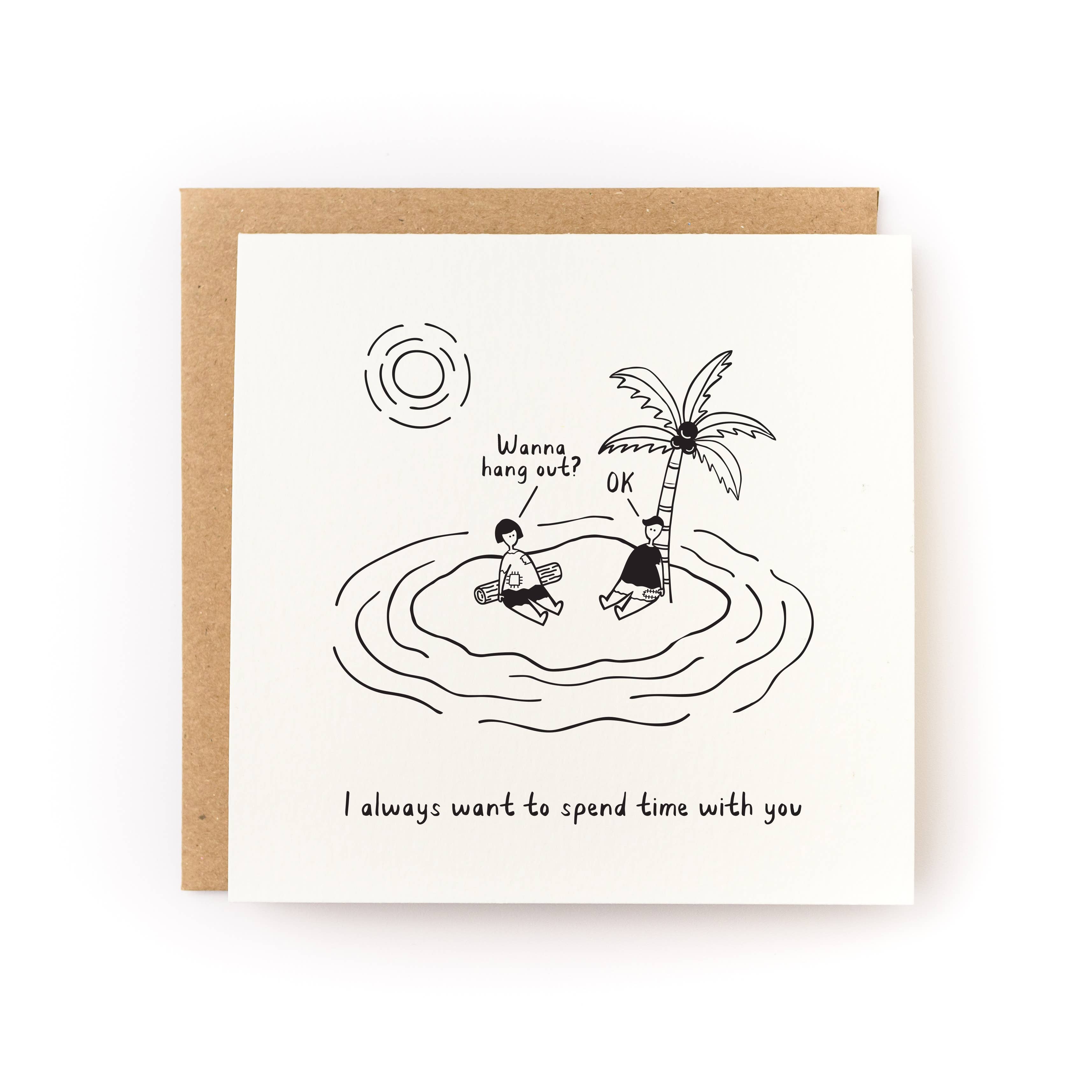 This card is for someone you're always are excited to see. - 4.75" x 4.75" folded card - Blank inside - Letterpress printed by hand on an antique printing press in Brooklyn, NY - Printed on luxe soft white cardstock - Paired with a 5" recycled kraft envelope and open cello sleeve - Square envelopes require additional postage Kwohtations is proudly a woman-owned and AAPI-owned small business, and inclusivity is at the core of everything we create. We print our letterpress cards by hand in Brooklyn, NY, so each one is truly a labor of love.